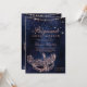 En modern, chic och glamorös sweet sixteen med en maskerad maskerad i guld med ro hand plockade ro med diamantgnistor på en glitter marin, blå vattenfärgsbakgrund.