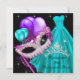 Masquuppad Party Boll Mask Quinceanera 15:e Födelsedagsfesten . Anpassa om du vill ändra eller lägga till information. Teal Blue Lila Rosa Black Silver Balloons Tiara-klänning