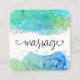 Den svarta texten i Massage-typografin finns på en ljusstark Grönt Mint Turquoise och Blue-konstnärlig abstrakt, modern, vacker, fängslande bakgrund.