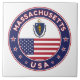 Badge of Massachusetts with flagga of Massachusetts and flagga of USA färg, rundad form. Massachusetts emblem. Förseglingen av Massachusetts. Samling i USA Stater.