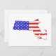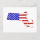Massachusetts Karta Shaped Patriotic American Flag Vykort