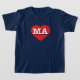 Denna t-shirt har ett pulserande rött hjärta som innehåller det feta, vita, övre fodral brev MORSA, förkortningen officiell för Massachusetts, segmentstaten.
