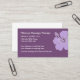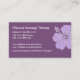Vackra affärskortmallar för hibiscus-blommor, temat Massage och Physical Therapist, i skuggor av lila med organiserad layout som du kan anpassa onlinen. Designad för en oberoende-terapeut eller sjukgymnastik.