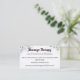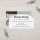 Öka din massageterapi med ett affärskort för anpassade som gör det möjligt att hitta plats för ditt företag, mobilt nummer, e-post och webbplats. Med serene lavender-toner och mjuk sage-grönt-accenter för designen kan du i bakgrunden visa dina behandlingar och redigera bilden om du väljer det. Oavsett om du erbjuder vården av en prenatal massage, stimulerande behandling av djup vävnadsbehandling eller överseende behandlingar som pedicures, manikyr och ansiktsbilder, skapar affärskortet en professionell och lugnande bild som passar dina kunder. Från att du bjuder in designen till att underlätta anpassningen, så kan du ta bort all inbjudan och ta till dig fridfullhet.