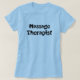 Söka efter massagedräkt eller massageterapeutskjortor? Denna skjorta har ord "massageterapeut" i en rolig stilsort, med händer som bildar delen av breven. Gör en underbar gåva för en massageterapeut. Bra för någon med massageterapiutbildning eller utbildning i terapimassage eller bodywork: Den thailändska massagen, shiatsuen, den kinesiska massagen, den orientaliska massagen, svenskmassagen, reflexologyen, brunnsortmassagen, den för födseln massagen, sportmassagen, fotmassagen, den head massagen, aromatherapymassagen, den medicinska massagen, avkopplingmassagen, den equine massagen, den hund- massagen, den djupa silkespappermassagen, baksidamassagen, nackemassage, förkroppsligar massage, och för licensierade massageterapeuter eller auktoriseradmassageterapeuter.