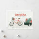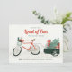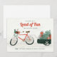 Detta illustrerade julkort har en handritad bild av en glad, röd cykel som bär en massa högtidspresenter, gåvor och dekorationer.