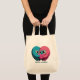 En snygg tote-design med två fluffy-monster som kramar varandra.