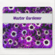 Är du en trädgårdsmästare eller känner någon som har denna skillnad? Den här vackra musknappen med blommigt har skarpa lila blommor tillsammans med ett svart och vitt centrum till varje blomma. De långa petalerna i lagrar överlappar varandra och skapar djupet och en underbar kontrast till blommornas centrum. En lätt grått-banderoll ger en solid bakgrund för "Master Gardener" som kan anpassas efter dina behov i kostym. Den här musknappen är ett underbart tillägg till skrivbordet om du är en naturtyp älskare eller en levande trädgårdsmästare.