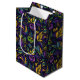 Vi presenterar den exquisite Mardi Gras-themed medium-presentpåse, designad för att ge presenter den pulserande andan i firande. Mot en dramatisk svart bakgrund tar en matris av Mardi Gras masker mittsteget. Varje mask, i livlig grönt, regal lila och vibrerande gult, exuderar en luft av mystik och opulens, som fångar kärnan av det festliga tillfälle. Gröntens masker ger en energisk och livlig anda till utformningen, som symboliserar föryngringen och livskraften hos festligheterna. Den regala lilan maskerar opulens och storhet, vilket återspeglar de historiska föreningarna av lila med nobilitet. Den gyllene gultens masker tillför en aning briljans och extravagans, som symboliserar tillfälle fantasi och allure. Fintvätt av turkos inslag dansar bland maskerna och tillför formgivningen en liten skönhet. De representerar en vibrerande anda och ger presentsäcken en elektrisk energi. Denna medelstora presentpåse är inte bara utsökt utan fungerar också som ett bevis på Mardi Gras vivfulla anda. Det är perfekt för att presentera omhuldade gåvor i stil, vare sig det gäller födelsedagar, årsdagar eller något speciellt tillfälle. Firar med oss och gör varje gåva till ett verkligt mästerverk!
