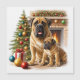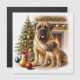 Hübsche Mastiff englische Doggen sitzen am Kamin im schön geschmückten Wohnzimmer und feiern Weihnachten. Toller Tannenbaum, Geschenke und Girlanden lassen den Raum sehr romantisch aussehen und die Hunde fühlen sich wohl.