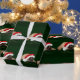 Engelsk Mastiff i en jultomtenhatt som gör hans bäst för att se mournfully ömkansvärt och i behov av helgdag för jul för juljubelhund älskare som slår in papper