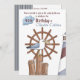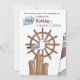 En fin inbjudan för att styra dina vänner till en nautisk fest eller en ombordfest. Denna marina design har en mås, hamnpålar, fyr och ett fartygsroder. Den är perfekt för segling, båtliv, fiske eller kryssningsentusiaster.