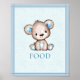 För Food bord vid din babydusch. Den baby blue bläckfisken med sydda brunbjörn. "Livsmedel".