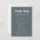 En enkel svarskort med plats för 3 middagsalternativ för dina gäster och en rad för en sång-begäran eller livsmedelsallergi. Vi är lycklig för att anpassa detta ytterligare för er, var snäll och skicka oss ett meddelande om hjälp.