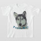 En vacker T-shirt har ett sött husky porträtt med frasen "Mata mig!".