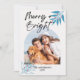 Kort för botaniska Personliger med heliga och ljusa Eleganter | Unika God jul-kort för Anpassningsbar | Modern enkel Löv X-mas-Helgdagskort | Den har penselerad manusgraftext "Merry + Bright" och dammiga blå löv.