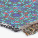 Ett komiskt, kaleidoskopiskt mönster täcker yta, med levande blå, grönt och röda nyanser. Geometriska former är sömlöst sammanflätade och skapar en symmetrisk och mesmeriserande utformning. Den totala effekten är vibrerande och synligt fängslande.