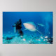 Bull shark matar dyva vid Playa Del Carmen. Matarna bäror en kedjepost kostym för skydd.
