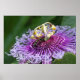Foto av hornet matande på en lila passionsblomma i en Florida-trädgård.