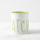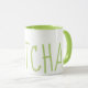 Matcha grönt text och inuti mugg