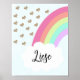 Denna bedårande affisch har den vänstra bågen av en färgrik regnbåge med gnistrande hjärtan av guld (gnistret är en digital effekt, det kommer inte att finnas verkligt gnistrande på denna produkt). Personifiera med ditt barns namn. Kolla in våra Kids Decor för den matchande regnbågsbågen och "Syskon gör de bästa vännerna"-affischen.
