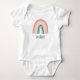 Den här söta bodykosten baby har en färgstark boho-regnbåge i korallpersika, rosa, guld och grått-blått. Ord, "mini" står under regnbågen. Kolla in våra matchande produkter för mammor i vår butik! Gör en underbar gåva till en ny mamma, Mors dag, en födelsedag, jul, eller någon annan helgdag eller speciell händelse!