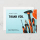 Ett minimalt tema för byggteamet är ett tack för att du har ett platt kort med en enkel verktygsuppsättning som temat. Den har ett matchande verktyg mot förgrunden med ett enkelt tack till sidan. På den motsatta sidan finns ytterligare ett område för ditt eget specifika tack till bygg- och ingenjörsteamet och/eller kunderna.
