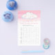 Ord söker babydusch/baby sprinkle-spel och vem är min mor matchande himlar rosa. Dina gäster kommer att ha mycket roligt med de här två tillbaka till backspelen. Vid besöket i ord uppmanas dina gäster att hitta det gemensamma baby-relaterade ord med hjälp av ord nyckel, som är idealiskt för att erbjuda ett pris till den snabbaste gäst som kan slutföra det. På motsatt sida är vem som är min mor för att gästerna ska matcha baby mot mor. Andra matchande vattenfärgduschobjekt i molnet i stollig finns tillgängliga eller kan skapas på begäran. © Unik, söt handmålad vattenfärgsgrafik och grafisk design av Sarah Trett för www.mylittleeden.com enbart på Zazzle.