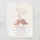 Ett litet par vilda fåglar som är klädda som en brud och en groom, slår med kärlek mot varandra. En underbar informell inbjudan till Post Bröllop Brunch.