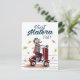 Matera Italienska helgdag reseaffisch skriver ut en rolig, mustakad man som kör en skov genom kavlade gator.