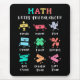 Playful math artwork with plus, minus, times, divide, equals, percent, greater than, less than and not equal. A friendly learning themed layout that shows how math concepts stay in balance. Great for teachers and students.