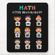 Playful math artwork with plus, minus, times, divide, equals, percent, greater than, less than and not equal. A friendly learning themed layout that shows how math concepts stay in balance. Great for teachers, students and kids.