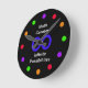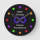 Math Clocks kan vara, så kallt och denna math ta tid på är inget undantag. Väggen tar tid på särdrag som oändlighetsmathsymbolet i blått i centrera på en svart bakgrund med ord "Math skapar oändliga möjligheter" runt om oändlighetssymbolet. De olika tiderna föreställs av olik färgad cirklar (lilor, rött, orangen och grönt) som förläggas runt om ta tid på. Denna math tar tid på är perfekt för mathklassrumet eller wherever de som har en kärlek för mathhopsamling. Ta copyrightt på Kathy Henis