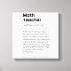 Math Teacher Definition, Math Teacher-uppskattning Canvastryck
