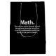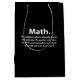 Math Typography Funny Math Medium Gift Bag designad av Nisha Prabhu. Lägg till lite matematiskt humor i din presentväska ge med den här roliga mattetypografiklådan! Perfekt för dem som kärlek siffror och ekvationer, den här medelstora presentsäcken har en lekfull typografi som säkert ger ett leende till någons ansikte. Vare sig du lägger ihop en present till en matematiklärare, student eller entusiast, är den här presentpåsen en roligt och ett unikt sätt att ge paket din gåva. Hämta din i dag och lägg till lite matematik humor till din nästa present!
