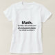Math Typography Funny Math T-Shirt designad av Nisha Prabhu. Om du är en matematik älskare med en känsla av humor, är den här roliga matematikdesignen perfekt för dig! Den här kvinnans t-shirt har en smart matematisk ekvation som visas på ett roligt och öga-fångstsätt. Stå i stil och visa upp kärlek för alla siffror och ekvationer från sak med denna unika och snabba garanti. Perfekt för matlärare, studenter eller någon som uppskattar ett bra matematikskämt. Lägg till den här skjortan till din garderob och gör en påstående som är lika bra och snyggt!
