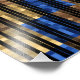 It's a computer programming art suitable for house decoration. It's a colourful geometric golden Lapislazuli colours Simulation pattern.