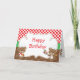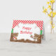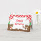 Ett födelsedags-kort för Matlagande Björn Chef för det speciella tillfället. Bakgrunden är röda rutor och bruna prickar. Orden kan ändras till dina egna detaljer