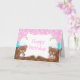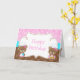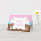 Ett födelsedags-kort med Matlagande Chef Björn för det speciella tillfället. Bakgrunden är röda rutor och bruna prickar. Orden kan ändras till dina egna detaljer