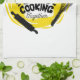 Överlåt dig åt den kulinariska magin med denna förklädesdesign som är skräddarsydd för kockar, köksentusiaster och de som finner glädje i att grilla, steka och skapa hälsosamma recept. Den fängslande designen, prydd med orden "LOVE COOKING TOGETHER", har en livfull gul virvel som symboliserar den dynamiska rörelsen hos omrörda matvätskor. I mitten ligger en träplanka, scenen för matberedning, åtföljd av manuella äggvispnings- och pastarullningsverktyg. Tre strålande röda hjärtan ovanför frasen tillför en varm touch till denna firande av delad kulinarisk passion.