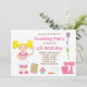 Denna gulliga matlagning och stekheta födelsedagsfest inbjudan är perfekta för en födelsedagsfest eller när som helst. Presenterar en gullig blond flickamatlagning i kök med ett förkläde och kock hatt!