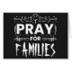 En slående typografisk design innehåller frasen "Pray for", som symboliserar solidaritet med offren för evenemangen och som främjar medkänsla för andra världar runt. Genom detta kollektiva hågkomst hedrar vi de drabbade och inger hopp om återhämtning. Den här designen fungerar som en mall för anpassaden. Om du vill anpassa den klickar du bara på knappen *PERSONALISERA DENNA DESIGN*. Du kan enkelt byta ut "FAMILIES" i ord mot ett speciellt ord, namn eller en valfri plats. Om texten inte får plats i det angivna området klickar du på knappen *PERSONALISERA DENNA DESIGN EDIT MED UTFORMNING AV VERKTYG*. På så sätt kan du ändra färg, flytta inslag, ändra storlek på komponenter, ändra typsnitt och lägga till eller ersätta text med din egen design. Njut av att skapa din unika design!