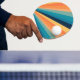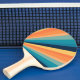 Egenillustration av Retro stil sol med geometrisk mönster med gult, orange, blått och turkos rand dekoration