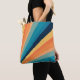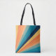 Egenillustration av Retro stil sol med geometrisk mönster med gult, orange, blått och turkos rand dekoration