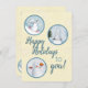 Snygga snögubbe-köksmästare som serverar mat och snöbullar på detta julkort för personliga eller privata köksmästare, restauranger, catering- eller mattjänsteföretag och andra matlagnings- eller matmatlagningsföretag. Du kan ändra all text, bakgrundsschemat i färg och lägga till logotypen för att skapa ditt eget helgdag.
