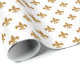Omslagning papper med projektionsytan guld fleur-de-lis mönster på vit bakgrund. Anpassade. Modern, trendig och elegant, det är en sofistikerad klassik som är perfekt för alla tillfälle.