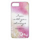 I den inspirerande citatteckenskriften iphone case visas en vacker löv-design med grönt och rosa stänk. Det finns en del av Bible Verse Matthew 28:20, i orden av Jesus, "Jag är alltid med dig".