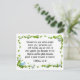 Ett kristet, inspirerande citattecken, platt kort beskriver en grönt klöver ram med en fågel och ett enkelt blåa blommor. Den innehåller en del av Beatitudes, Jesus berömds undervisning från Sermon på berget, Bible Verse Matthew 5:11-12, "Bläst är du när folk förolämpar dig, förföljer dig och falskt säger alla möjliga onda saker mot dig på grund av mig. Rejoice och gladde dig, för underbaren är er belöning i himlen." I hälsning kan bön anpassas eller raderas för ett handskrivet meddelande.