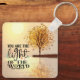 Nyckelkedjan för kristna inspirationstecken i citattecken visar att sol lyser på ett träd och återspeglas i vatten. Det innehåller en del av Jesus - "Sermon on the Mount" från Bible Verse Matthew 5:14, "Du är världens ljus".