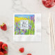 Den kristna inspirerande citatteckenskriften napkin skildrar en konstnärlig vattenfärgsmålning med lila och blåa blommor, grönt och blå himmel. Bible Verse Matthew 5:44, i Jesus ord: "Men jag säger till er, Kärlek era fiender och be för dem som förföljer er."